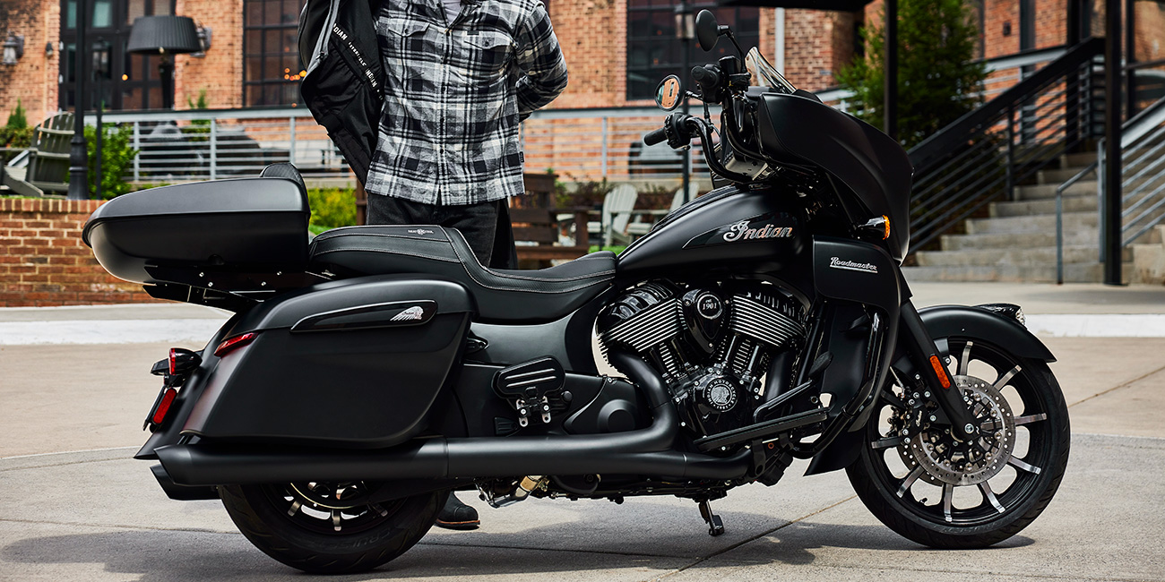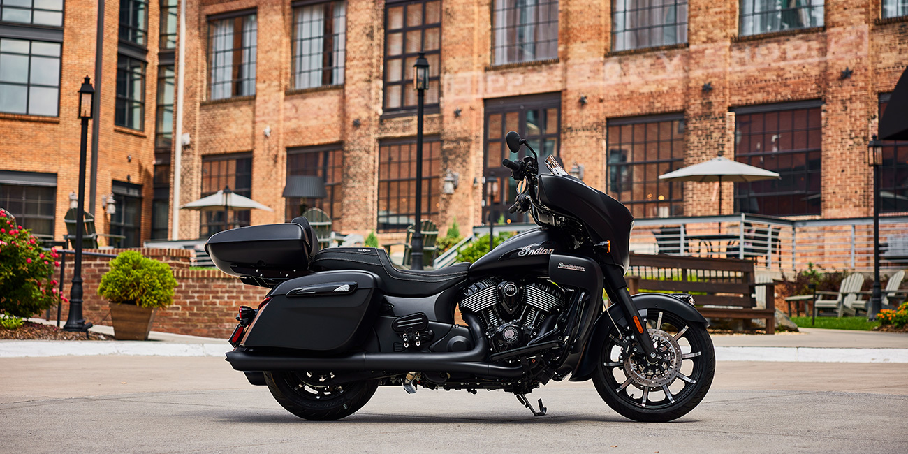 With harder edges, sharper lines, and more black design features, the fully loaded Indian Motorcycle Roadmaster Dark Horse is a masterfully made, strong, and well-balanced touring bike.