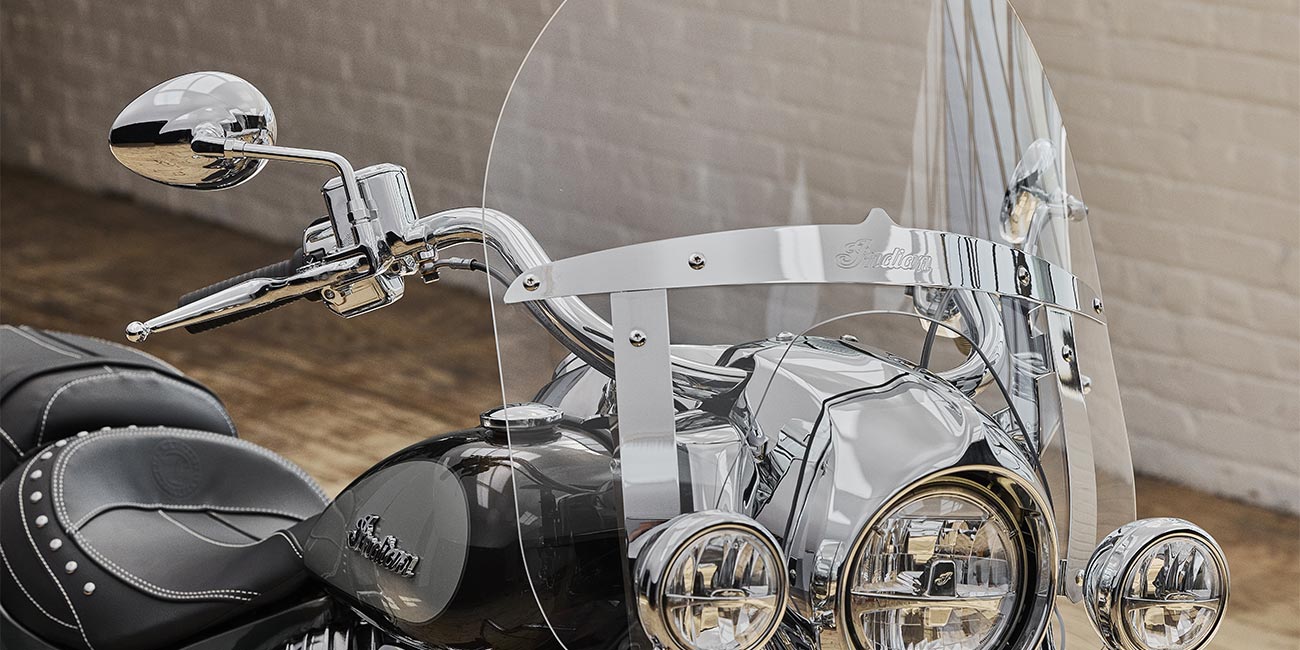Quick Release Windshield; Genuine Leather Seat; Remote-Locking Hard Saddlebags, Highway Bars; Tyre Pressure Monitoring; Light Bar; Selectable Ride Modes, ABS; Cruise Control; Keyless Ignition; Indian® Script Tank Badge; 12v Charging Port