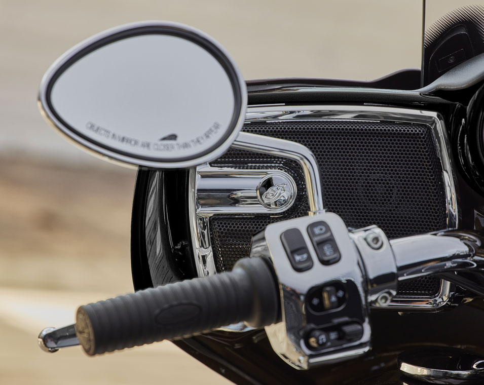 | Standard Equipment | 7" Touchscreen powered by RIDE COMMAND with Navigation and Apple CarPlay integration; Power Windshield; Highway Bars; Vinyl Rogue Seat; Tyre Pressure Monitoring; Remote-locking Hard Saddlebags; Selectable Ride Modes; Rear Cylinder Deactivation; ABS; Cruise Control; Keyless Ignition; 100 Watt Audio System with AM/FM, Bluetooth, USB, Smartphone Compatible Input, and Weatherband; 12V Charging Port |